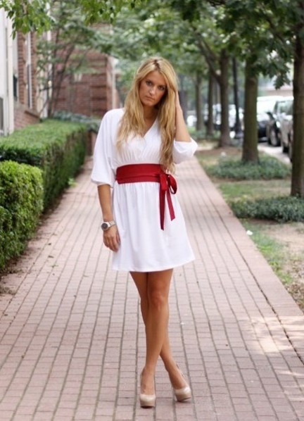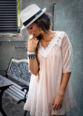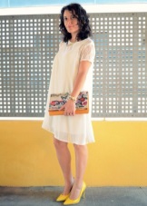 - Sundress. Easy white dress suitable for a walk, and for a beach party. To it you can afford simple ballet flats or slip-ons. But are not forbidden, and shoes with a steady heel. The length of the dress can vary from mini to maxi. The longer the dress, the shorter the heel, and vice versa.