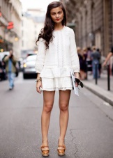 This color is conservative and applied in business style. Light white fabrics are suitable for a romantic look. Going for a walk - a white dress with a simple cut and accessories will help to create an interesting look. For the image to be fully understood, its important part is shoes. Will it be shoes or sports sneakers, slipons or sandals - the whole image will be decided.