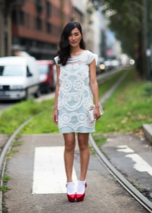 - High / medium / low heel shoes. Depending on the height you can choose to any version of the dress. Heel can be thin, stable, with a tread sole and even a wedge. This can be attributed, and the model Mary Jane.