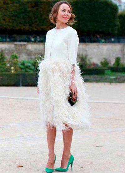Tights can be matched to the color of shoes. Only with bright colors do not do this. In this case, the dress should be knee length or longer. Give up the tights in the mesh, it will look vulgar. The same category includes sparkles. White tights are the prerogative of nursing outfits, you don’t need to get carried away with them, they fill your legs and highlight all the defects.