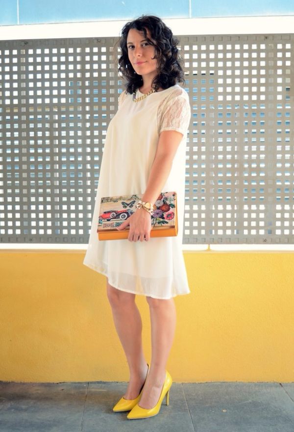 - White. White shoes and a white dress are the number one pair of combinations. Fashion designers considered this duo obsolete. But not for nothing they say, everything new is well forgotten old. And this style is back again. You can dilute the whiteness with bright jewelry or a handbag and strap. To make such a variation look in a new way, you can experiment with shades of white.
