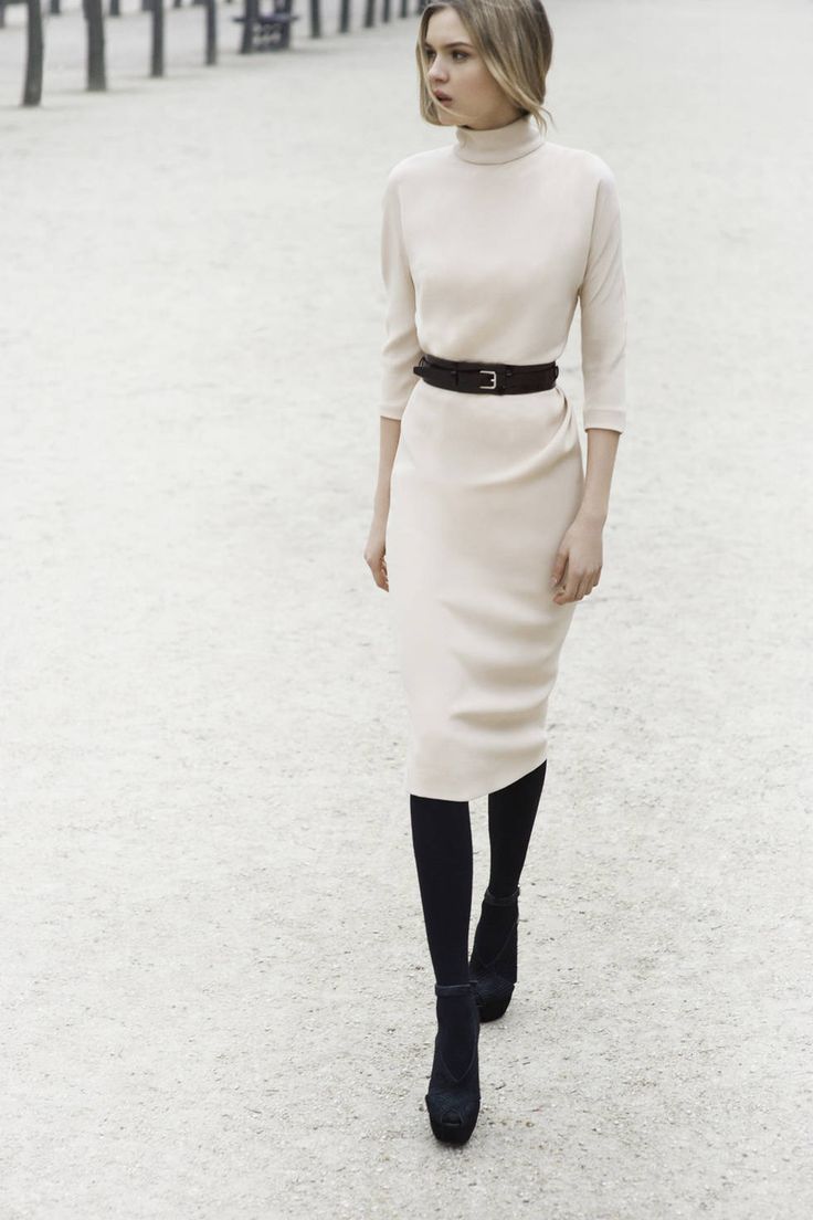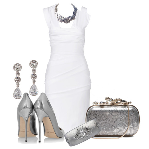 - To work. A white sheath dress and boat shoes with a medium heel of cream or black color, complemented with calm silver jewelry will be an excellent business style solution.