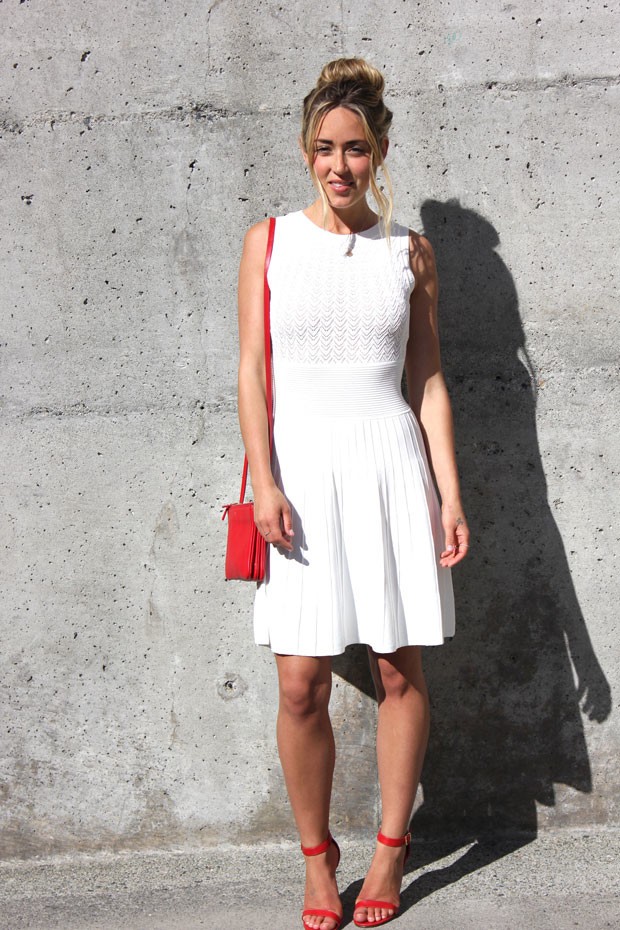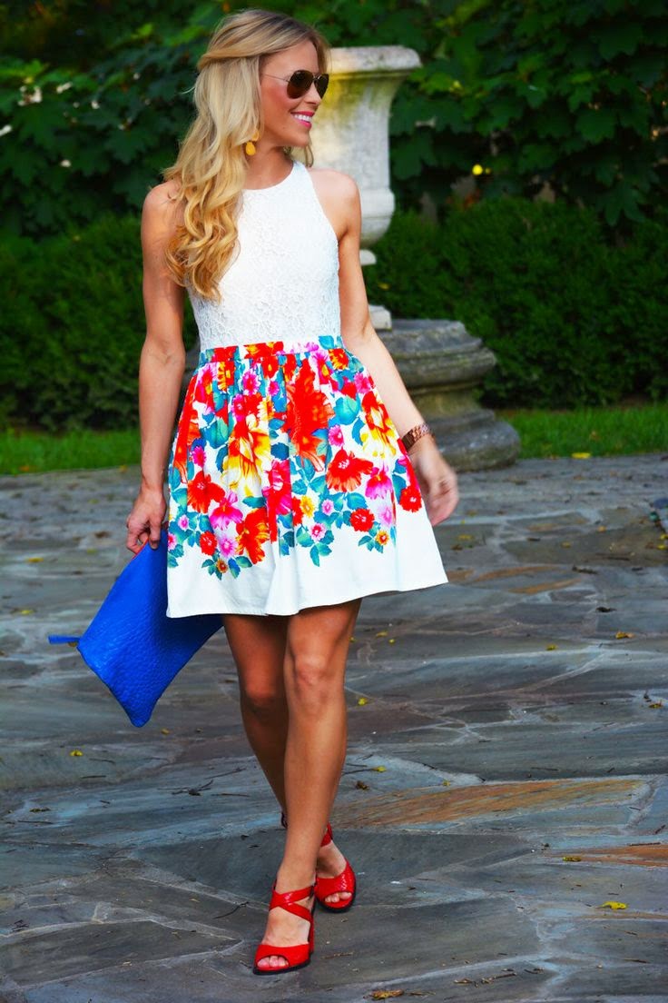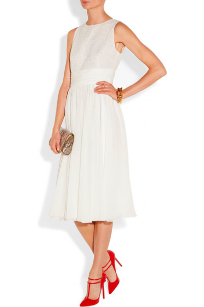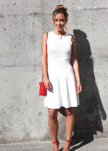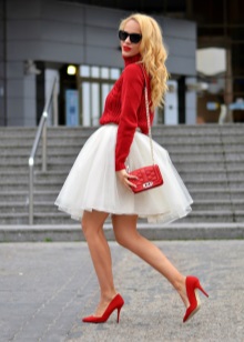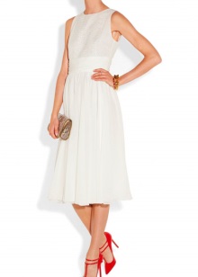 - White dresses, skirts and suits, as well as sundresses look feminine and romantic with red shoes with low heels.