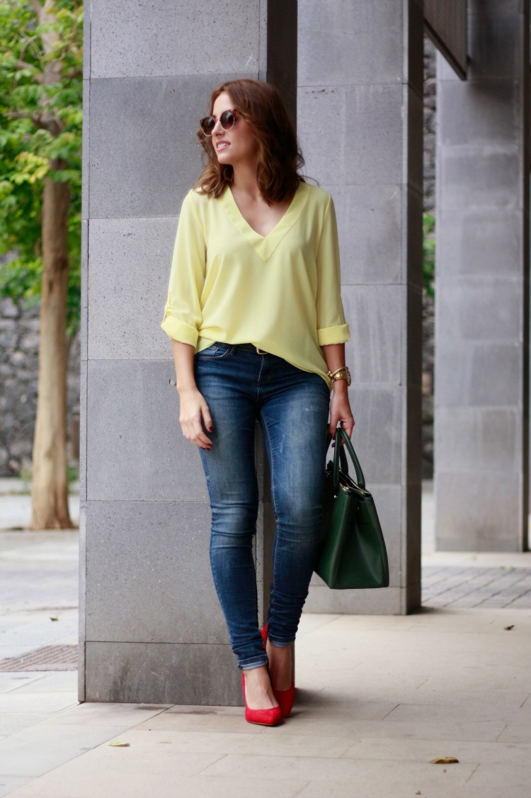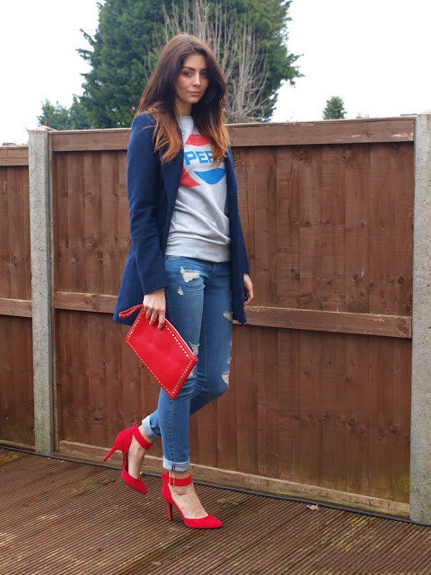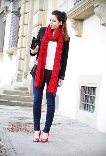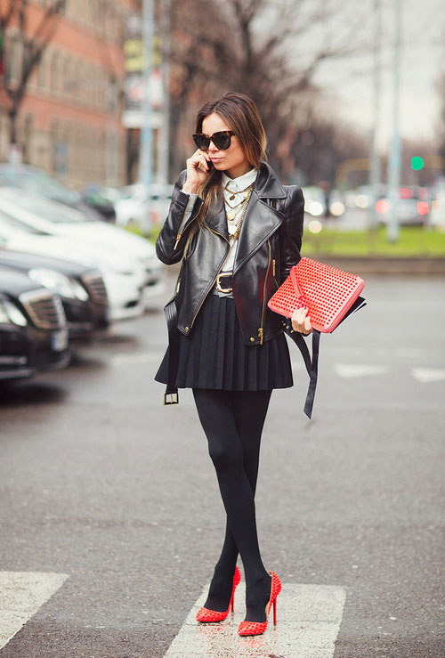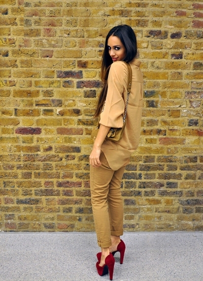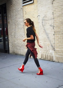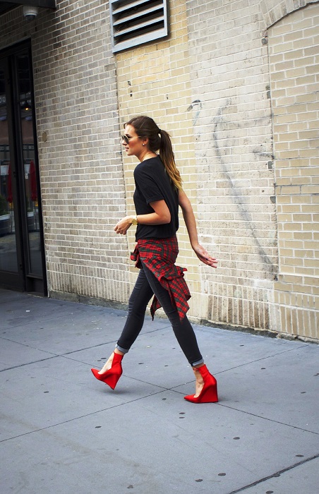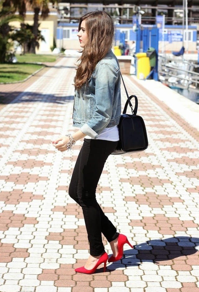So, red shoes are perfectly combined with the following things: