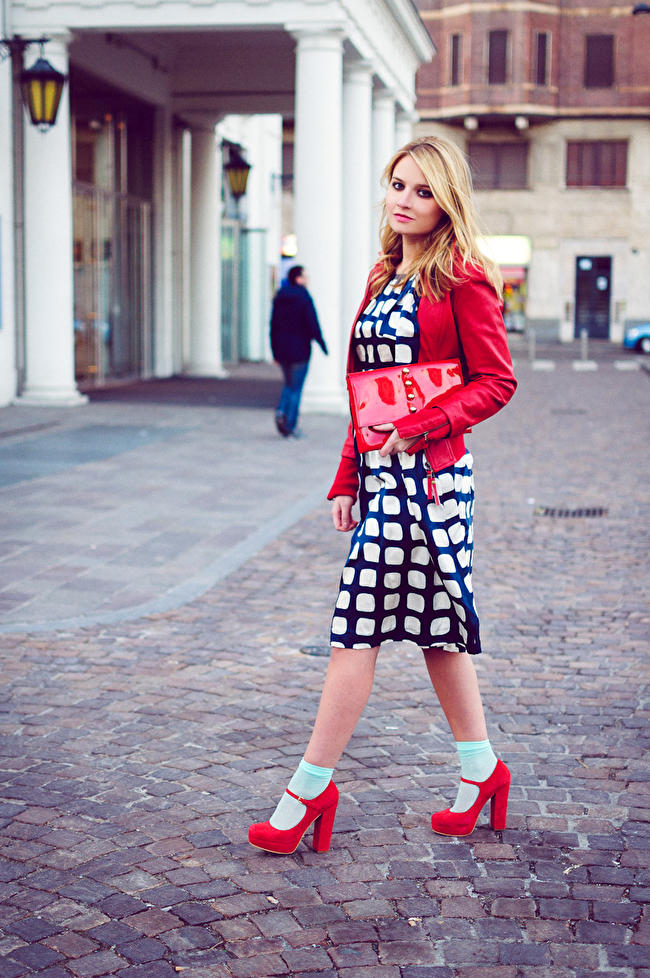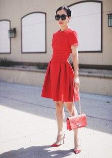 - Red shoes can be combined with dresses of straight, classic cut and dresses of muted, pastel colors.