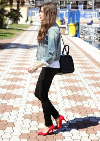 There are classic variants of combinations of red shoes with clothes and accessories of different styles: