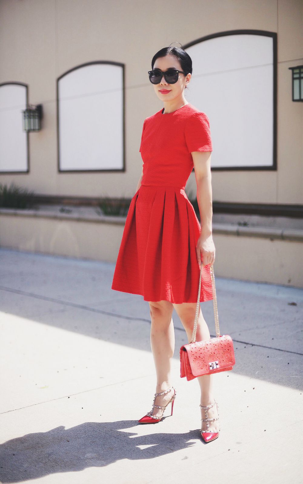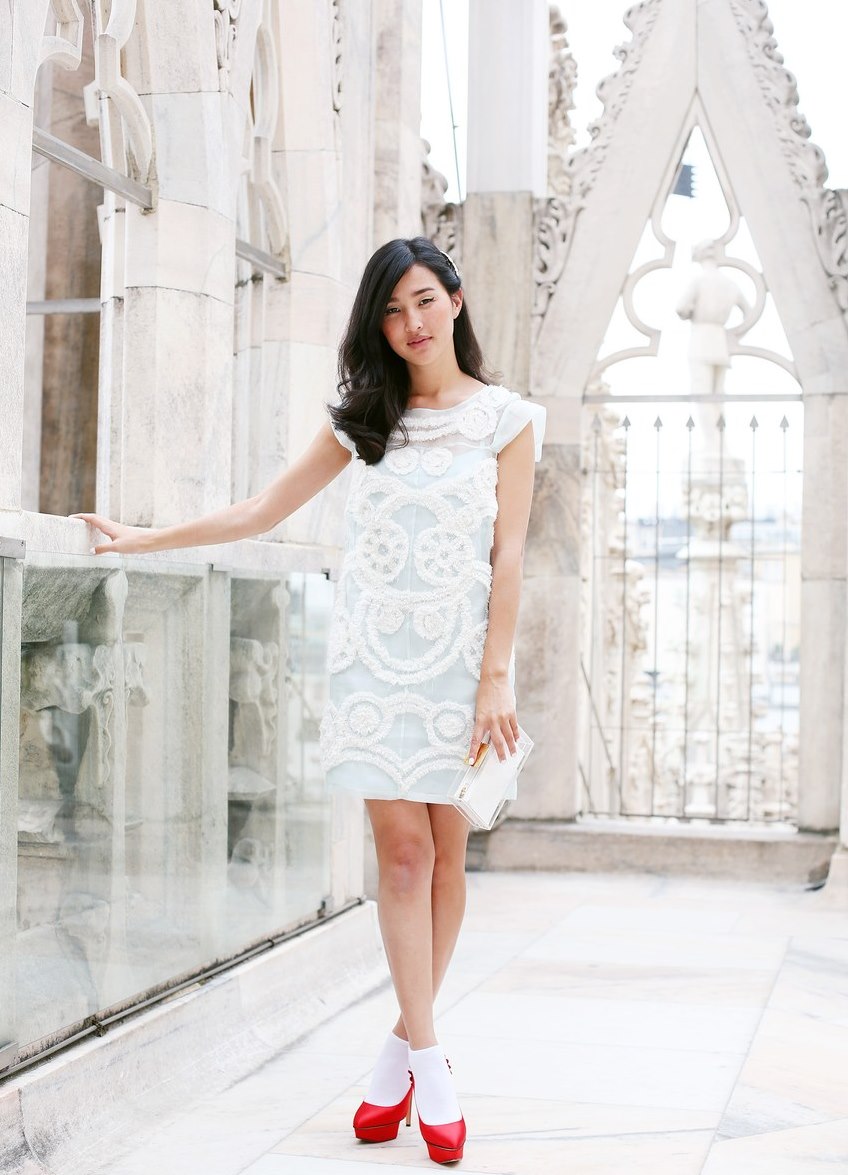 - By itself, a pair of red shoes is a bright element in the overall image, so accessories will be superfluous.