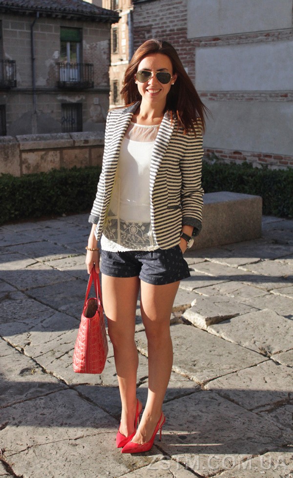 - Denim shorts and a light shirt or t-shirt are suitable for shoes with an open nose.