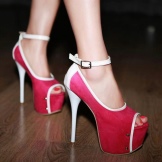 These shoes look beautiful with a variety of decor: bows of sequins or textiles, various inserts, stripes of geometric shape. Elegant looks stylish lacing, encircling the ankle, as well as metal rivets, edging the open spout. There are romantic models decorated with satin ribbon. The most outrageous option - with a high platform contrast.