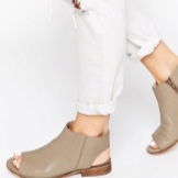 Open toe shoes are perfectly acceptable to wear with jeans, pants, shorts. However, here it is necessary to observe the compatibility of materials: for example, classic flared trousers cannot be combined with shoes from a groom. As for jeans, they are well combined with shoes with a wide heel. Such an ensemble will ideally complement a naughty print T-shirt and a bulk bag.