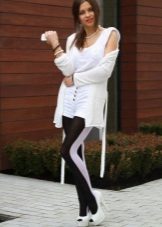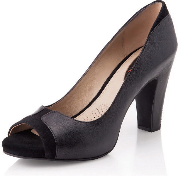 The most important issue that perplexes owners of shoes with an open cape - Is it possible to wear them with tights or stockings? It must be said, the opinion of stylists on this issue is ambiguous. Some people consider this unacceptable, while others fully admit it. The choice is yours, if you decide to wear tights under such shoes, then it should be a thin product (15-20 den) imitating a “second skin”. More dense will look vulgar. As for black shoes (and this is the most common option), they can be combined with tights of the same color.