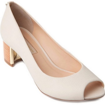 Shoes with an open nose are presented in stores in the most diverse and unexpected colors. Often, an open nose is highlighted by a contrasting color trim. Always look elegant white models, especially on the stud, equipped with a thin strap with a metal buckle, covering the ankle.