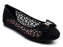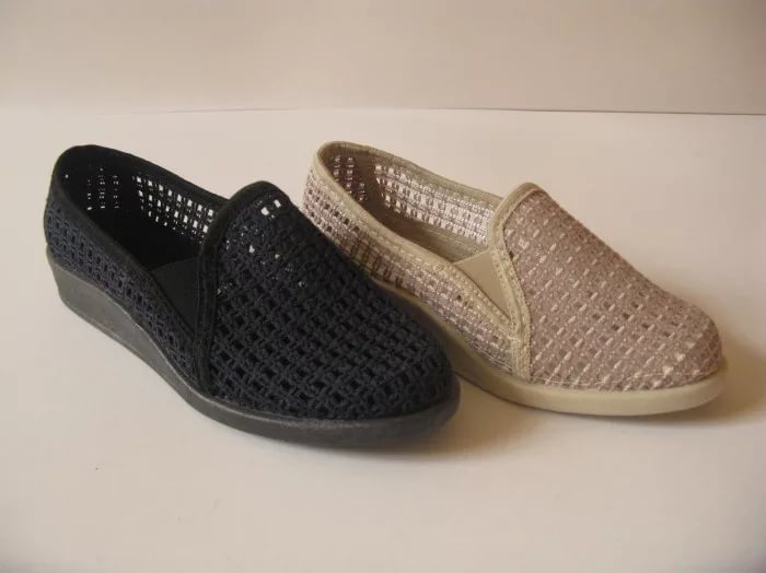 Mesh - an indispensable part of summer shoes. And a variety of models. Special Popular ballet flats, open shoes, clogs. For such models, a grid with large and small cells is used, to decorate elegant models, an openwork grid with a beautiful pattern is used. Often, for additional decor, the net is decorated with gold and silver thread, rhinestones, embroidery, beads.