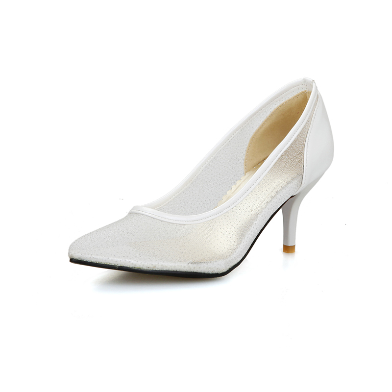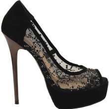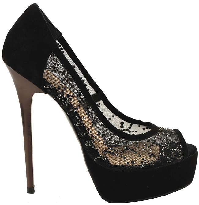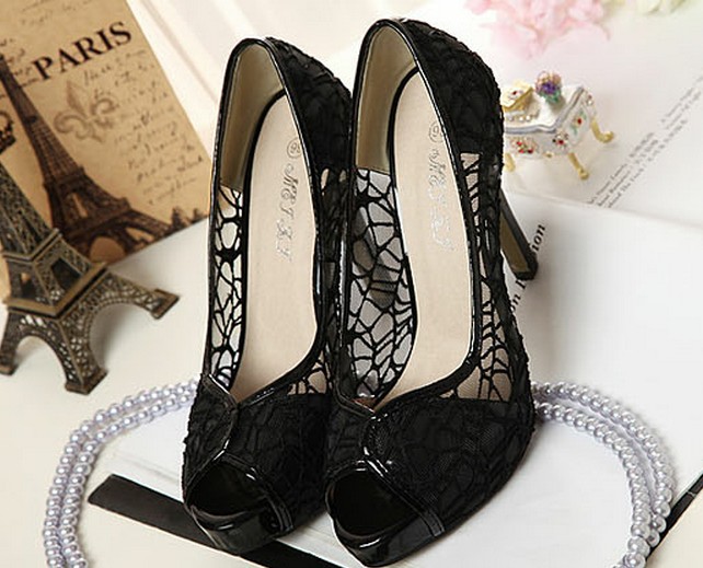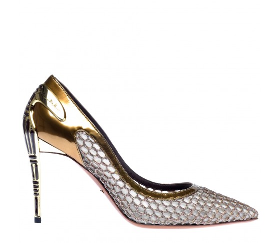 Classic pumps or elegant high-heeled shoes decorated with openwork mesh - The perfect complement to a high slit evening dress.