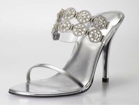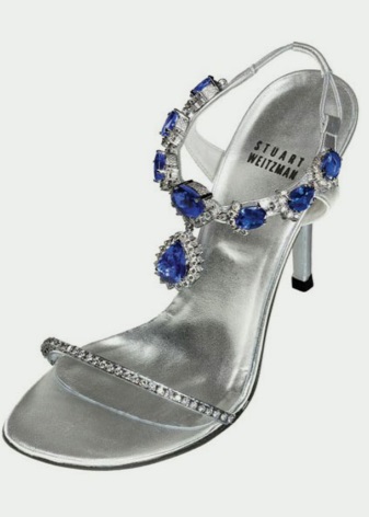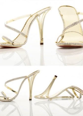 Platinum sandals with high heels are decorated with 470 diamonds of different shapes: there are both round and pear-shaped stones. It is worth noting that the diamond filling is carried out thanks to the jewelry company Kwiat.