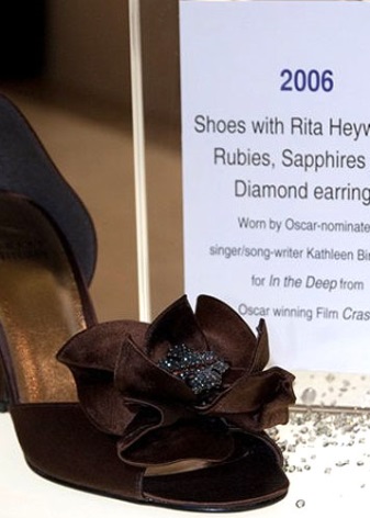 The shoes were the main topic of discussion at the Oscar ceremony in 2005, where they featured the famous actress Regina King. At that time, shoes were still presented in their original form, but immediately after the ceremony, the crystals were replaced with exact copies, and the original ones became one of the lots at the auction.