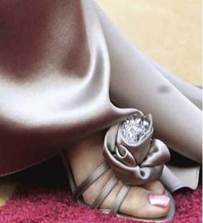 The shoes are decorated with a large rose made from almost two thousand small diamonds, the total weight of which is about one hundred carats.