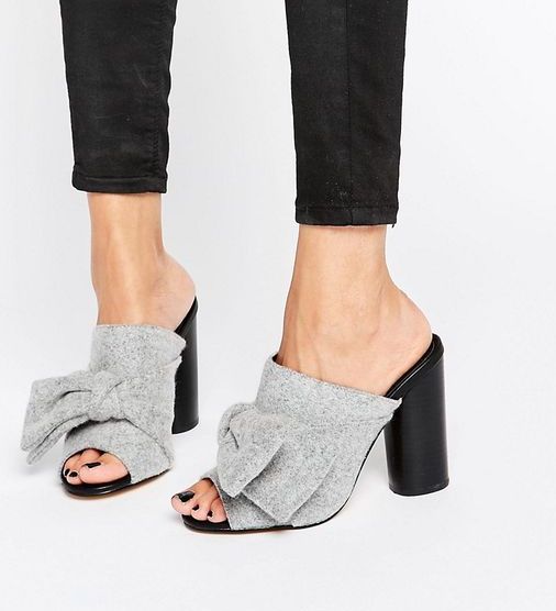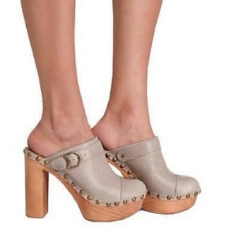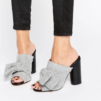 A convenient alternative between sandals and shoes are mules - shoes with closed toe without heels. Mules can be on the heel and on a solid sole. Variety muly - logs on a wooden platform with riveting.