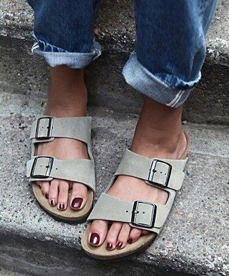 Gray suede ballet flats are suitable for the casual style in the city, and the suede mouse-colored tops will be the perfect solution for the respectable smart casual style. Wet asphalt Birkenstocks are a great alternative to black in summer.
