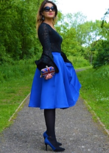 Blue-black pointed pumps are perfectly combined with light and dark skinny jeans, complemented by light tunics and tops. Colored pants and skirts in blue, blue, mint and turquoise with monochrome blouses in an ensemble with dark shoes will look very fresh and impressive.