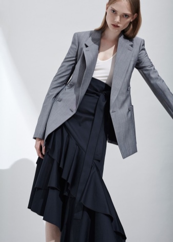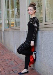 Light-blue dresses of direct cut harmonize with blue-black shoes. Models with a wide skirt and contrasting shoes create a very gentle and feminine look. The dress can be made in white, pink, blue, black and blue.