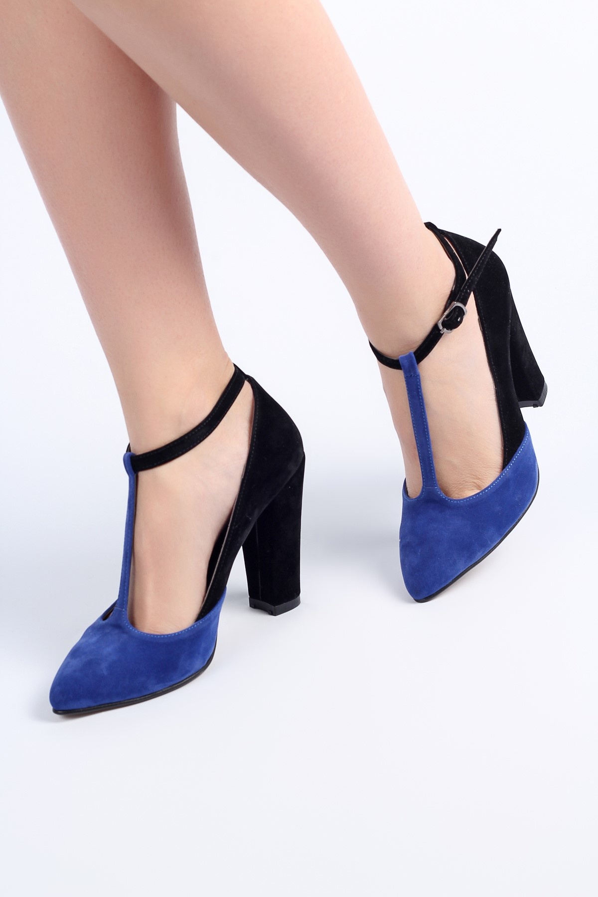 Blue-black shoes look very bold and sexy. Two contrasting colors complement each other perfectly. Such a stylish shoe model is able to decorate many feminine images.