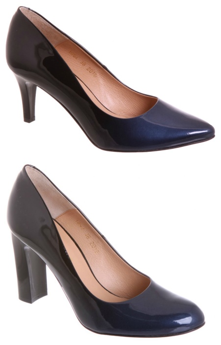 Black shoes can have a contrasting blue toe, heel, side parts, sole or heel (and vice versa). Varnished models with a smooth transition from one color to another (ombre effect) over the entire surface look very stylish and attractive.