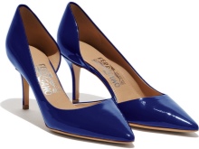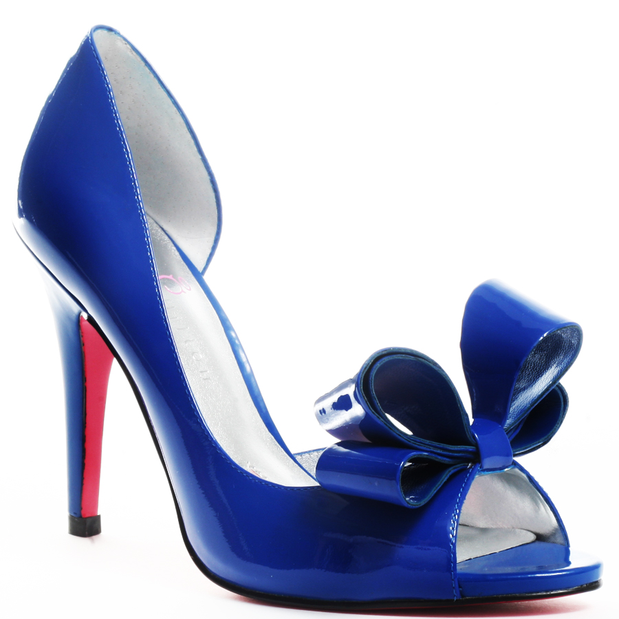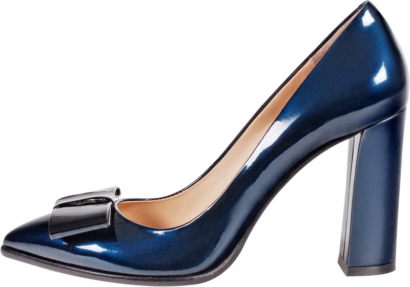 - Lacquered shoes with a medium heel designed specifically for office workers. Business look with this shoe turns charming. The model looks quite conservative, so the bow looks restrained, and the dark blue color and lacquered surface add originality and freshness.