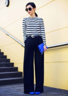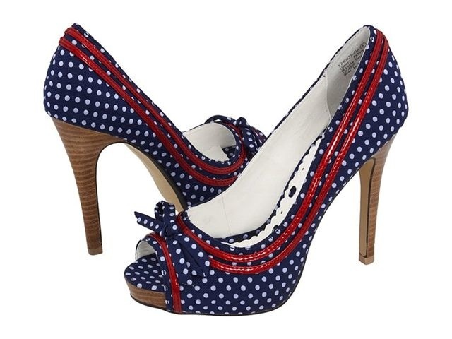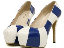 The maritime orientation of the style of blue-and-white models will be perfectly underlined with a blouse or a striped dress. There are shoes with a white sole and a blue top and vice versa. In some models there are bows on the toe, painted in a suitable color.