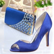 Unusual and bright blue shoes with textile trim look very interesting and attractive. This shoe has a rather serious drawback: satin models attract street dust and dirt. These shoes look gorgeous and are suitable only for a chic social event in tandem with a luxurious luxury dress.