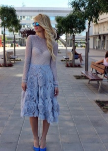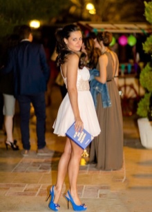 Blue high-heeled shoes are perfect for a festive evening dress. The perfect combination with such shoes will be gorgeous dresses of various lengths of blue, white, black, red and pink. Bold fashionistas may be interested in an unusual combination of blue shoes with orange or yellow outfit. Brilliant beads, pendants and bracelets to match the color of shoes will effectively complement the festive look and emphasize the bright personality of the lady.