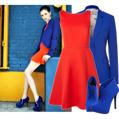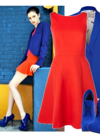 A bold and hot look is easy to create using a combination of two seemingly completely different colors in clothes and shoes: blue and red. A red dress and blue patent leather shoes will not leave the young lady without attention, but it is worth remembering that you should not overload such an outfit with bright accessories. Combinations such as: a blue dress and a thin red strap or vice versa will perfectly underline the slim figure.