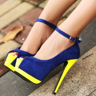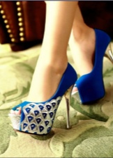 Brightness and originality of blue shoes can add the addition of contrasting colors. The hem on the upper part, platform, heel, sole or side insert can be beige, white, red, black or a rich fuchsia color.