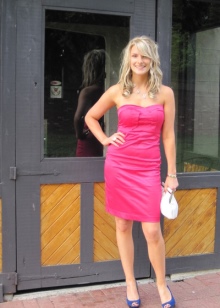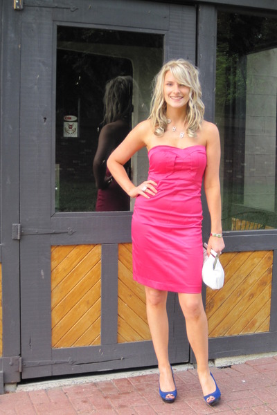 - medium length dresses with suede and patent blue shoes on the platform.