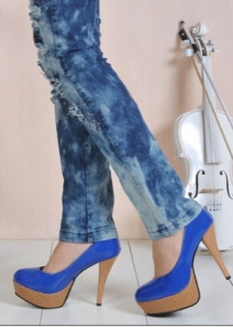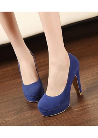 Stylish blue shoes on the platform are made of leather, nubuck or suede. Leather surfaces can be both opaque, and varnished.