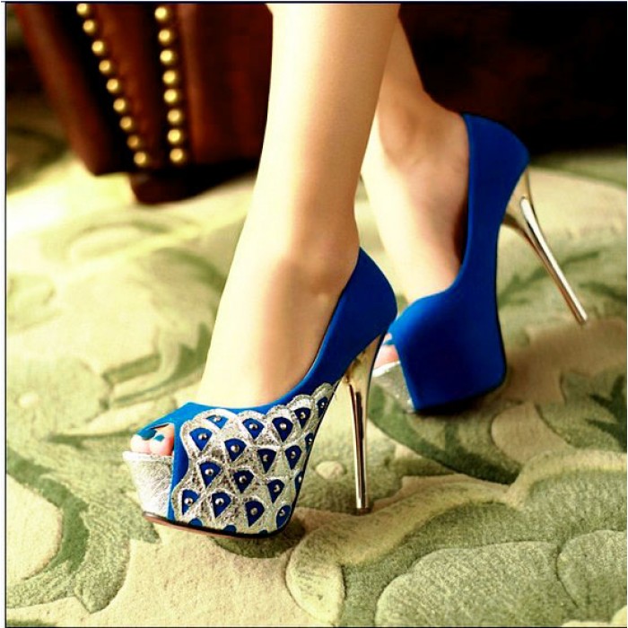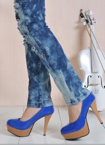 Stylish and sexy blue platform shoes go with many types of clothing. In everyday fashion, these models are in harmony with:
