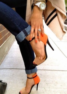 To create a more sophisticated and elegant look, shoes with high, thin heels or stiletto will perfectly fit. They are in good harmony with the top, blouse or shirt with flared skirt, fluffy dress, light sundress. Elegant stilettos perfectly complement the evening toilet.