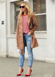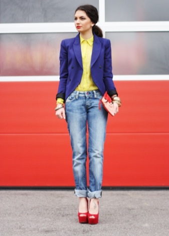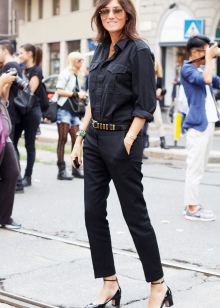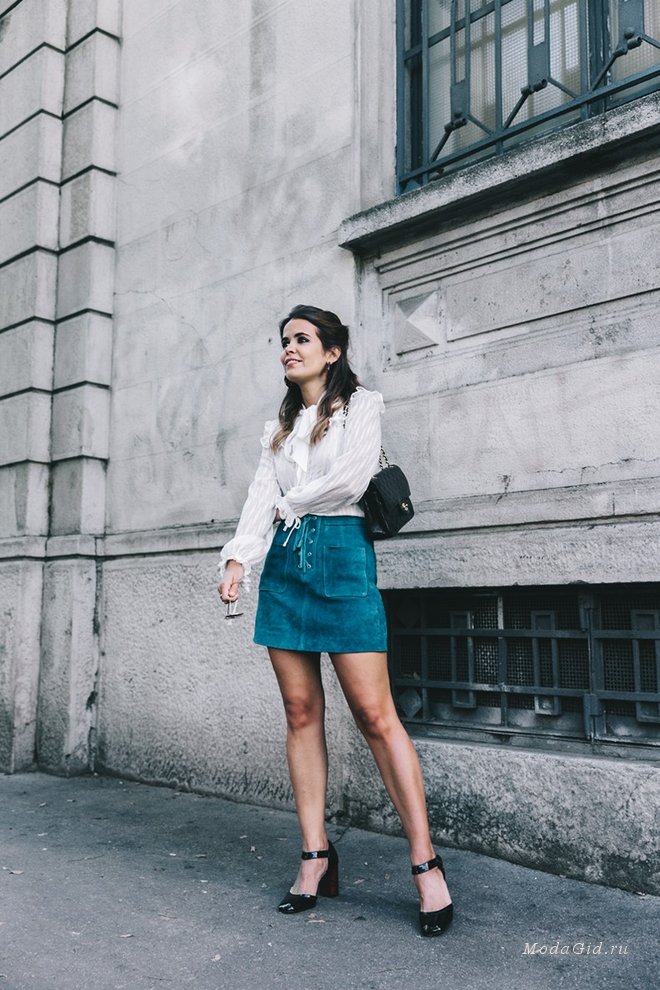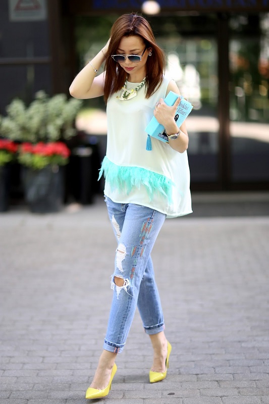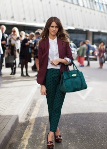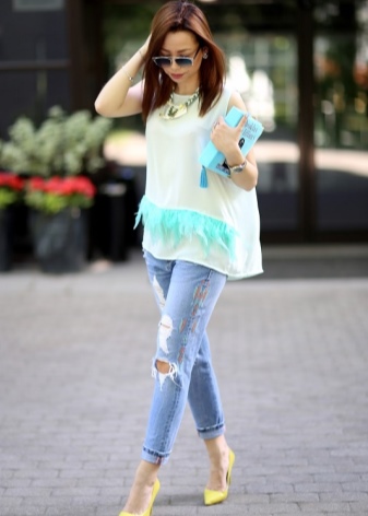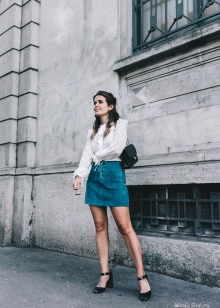 - Daily routine can also be stylish! Skinny jeans and a denim shirt to them in tone, perfectly combined with menthol boats with high heels. Shoes of this shade will be the highlight of the dress and slightly refresh it.