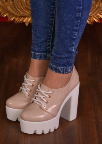 Tractor outsole became a real hit in the world of shoe fashion. Shoes on tractor soles look quite massive, due to its volume. As a rule, such a model is equipped with a fairly high platform, has a thick heel or wedge.