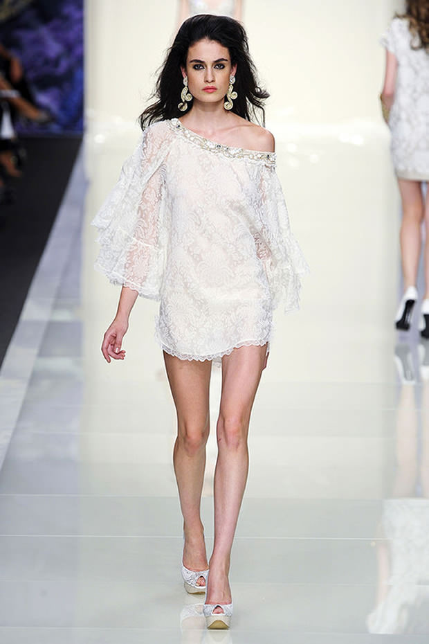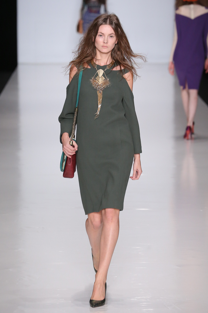Brown models are in harmony with dresses and skirts of peach, blue, pink and chocolate tones.