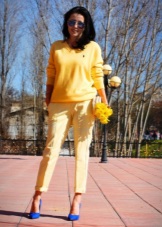 Blue suede shoes with snow-white trousers look elegant and stylish. When choosing a top, you can give preference to blouses or shirts in turquoise, blue or blue.