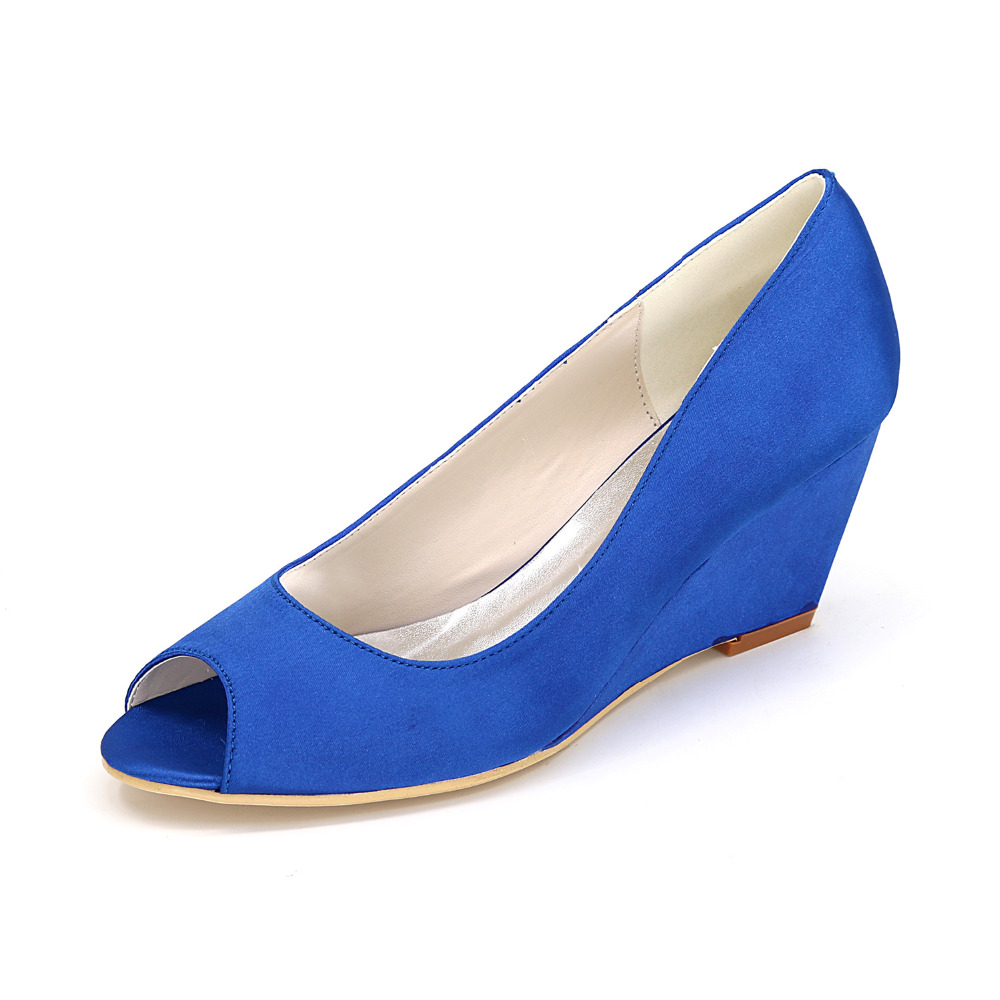 - On the wedge heel - shoes are distinguished by convenience and comfort, since the footprint is much larger than the heel. Blue suede wedge shoes are often combined with clothing to create a casual bow.