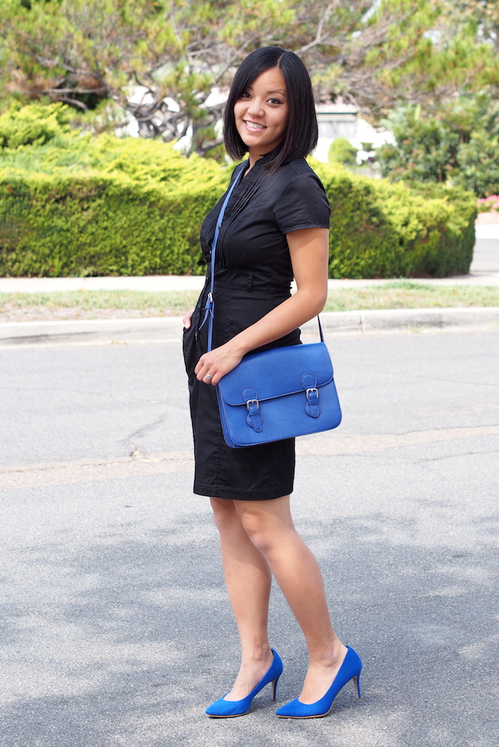 Blue suede slippers can be used to create stylish bows in a business, casual style or for special occasions.