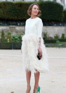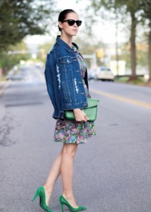 - Suede shoes for onions are not enough. They will look somewhat inappropriate if they are the only suede product in your wardrobe. It is strongly recommended to get a suede bag of the same color as the shoes. A green suede jacket is also suitable.