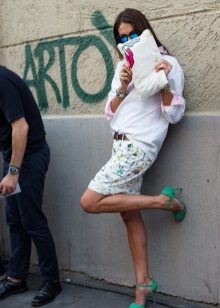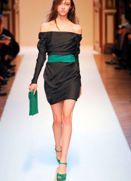 - Green suede shoes will enter into a stunning symbiosis with a short black dress, complemented by a thin strap to match the shoes.