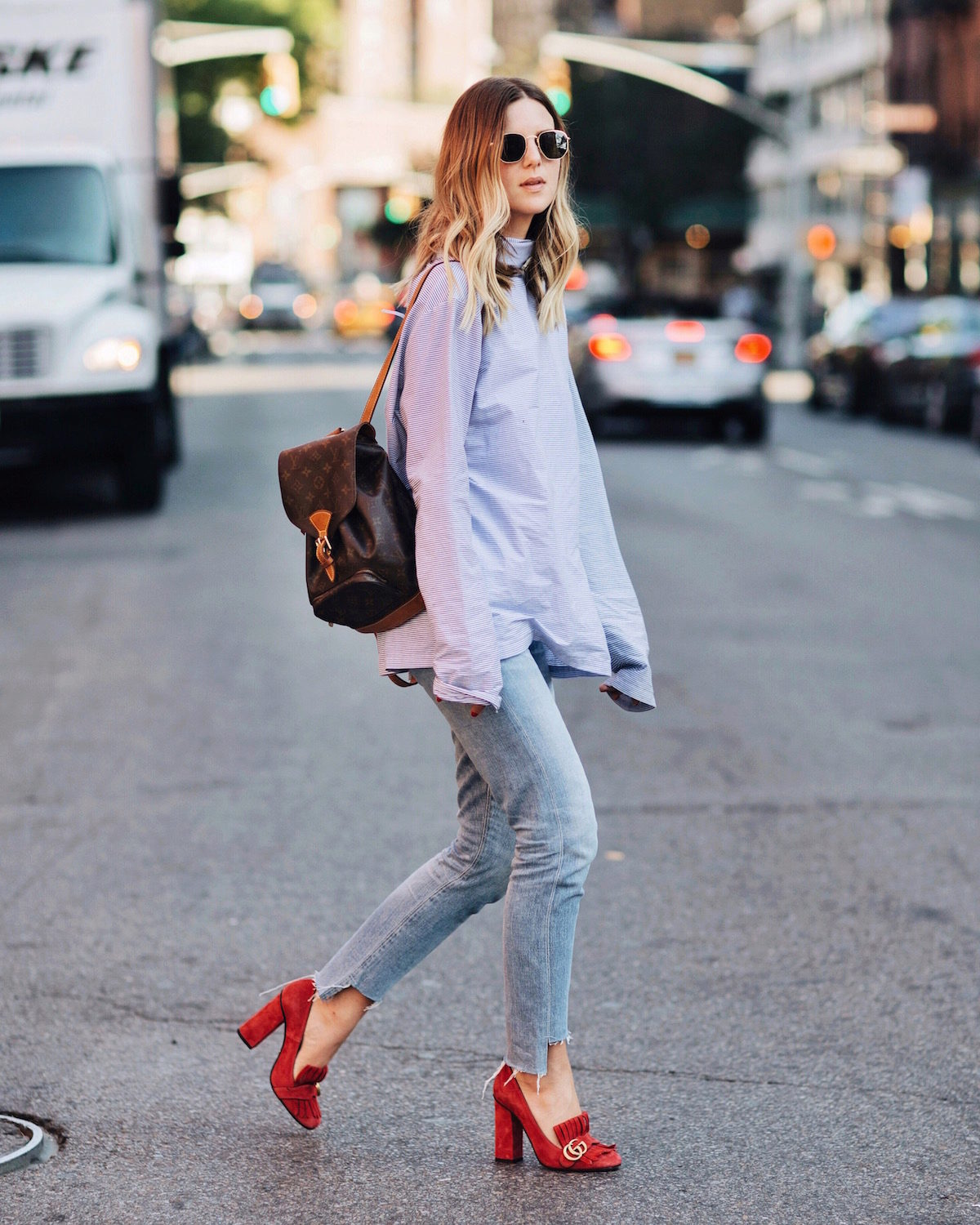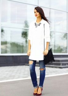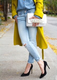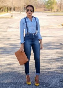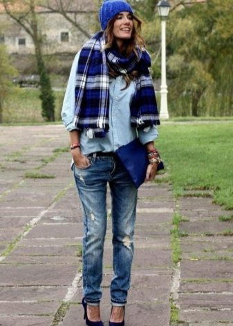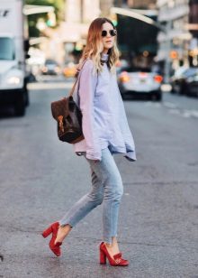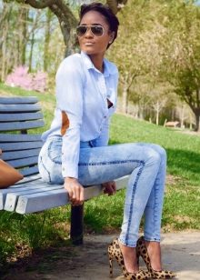 Most models are perfectly combined with blue denim clothing of all shades. This may be ordinary jeans, skirt, dress, shorts, overalls. This is especially true for models of blue and red, which are elegantly revealed in a pair, even with regular jeans, boyfriends.