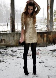 Black or beige suede shoes are suitable for wearing. They will look amazing in a company with a brilliant dress. Such a game in contrasts looks luxurious and stylish. You can afford the maximum: sequins, rhinestones, blotches of gold thread and other sparkling decor.