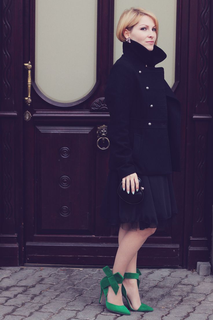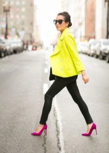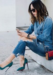 - Emerald shoes are incredibly relevant! They will be well combined with a dress of white, black, yellow or pink color. In other matters, you can experiment and pick up to them any clothes of bright color. It will turn out very fresh and interesting.