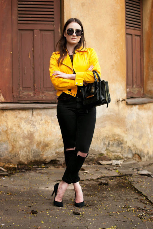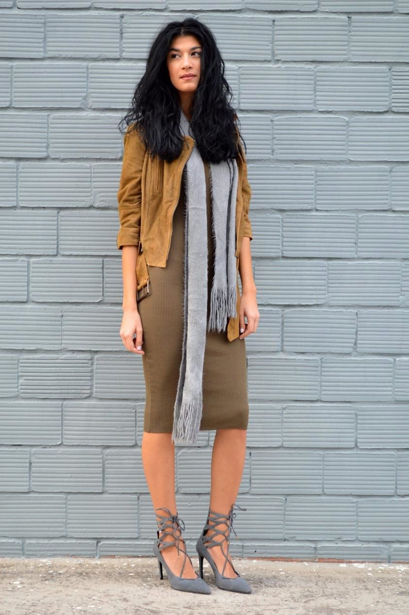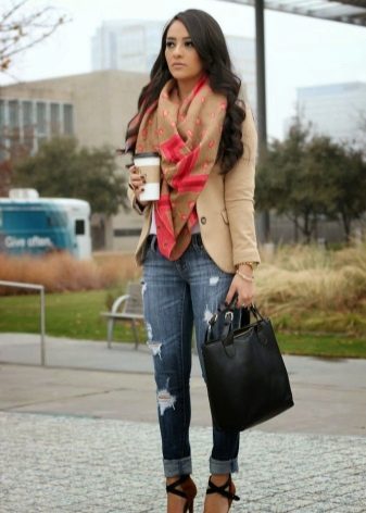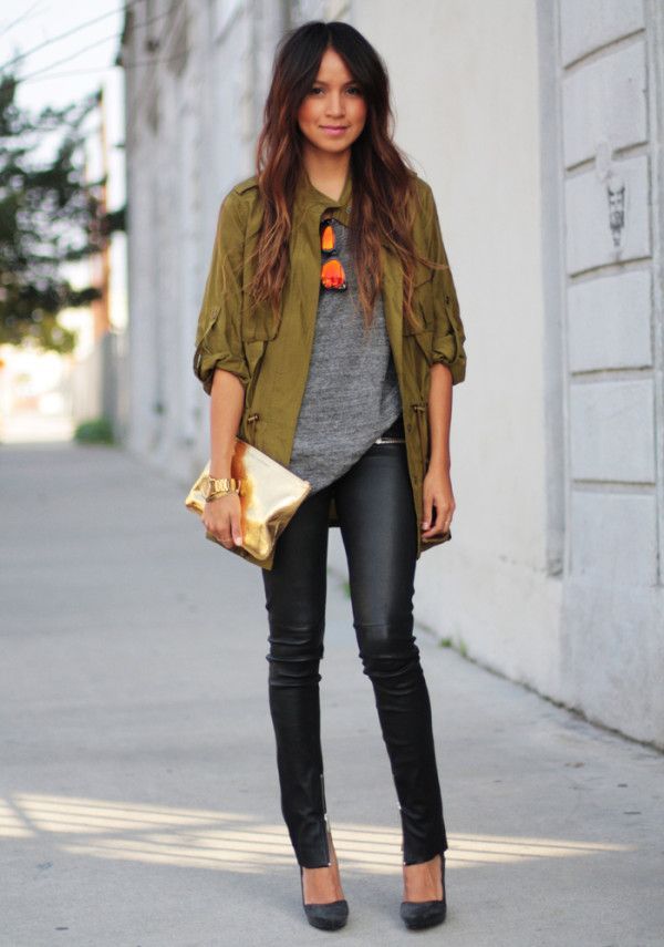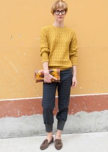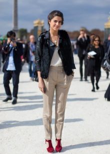 Leather and knitwear will also look great with chamois. It can be leather leggings, a miniskirt, a knitted dress or a stylish jumper.