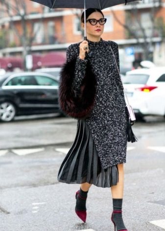 Stylists are advised to wear such shoes on bare legs, but if you want to wear tights underneath, let them be bright or dark.